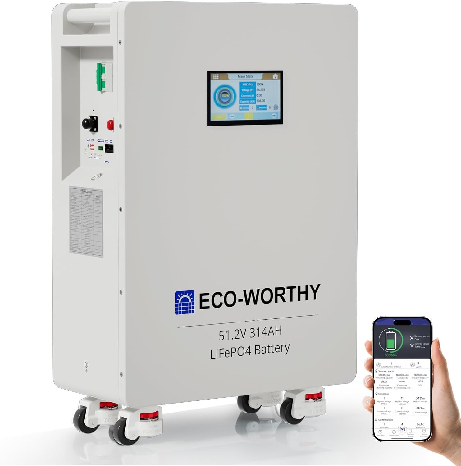 16.1 KWH ECO-WORTHY 48v(51.2V) 314Ah LiFePO4 Solar Battery| Residential